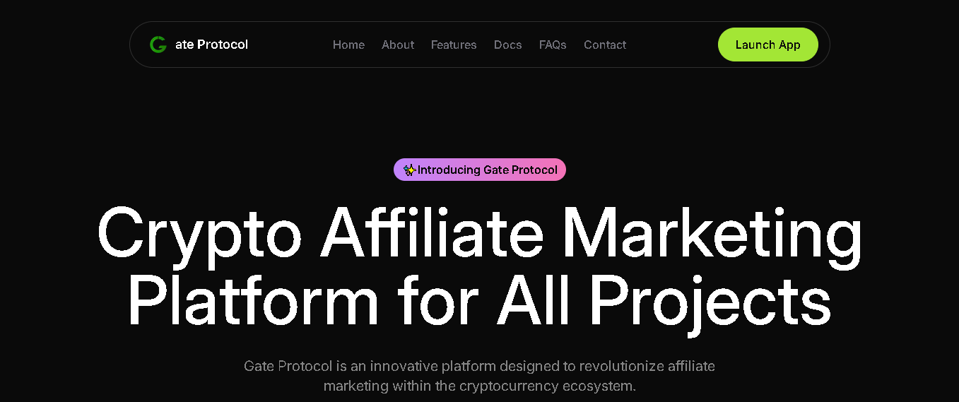 Gate Protocol is a Crypto Affiliate Marketing Platform Designed to Reward Users for Promoting Cryptocurrency Products and Services. It leverages blockchain technology to ensure transparency, security, and efficiency in tracking referrals and distributing rewards.