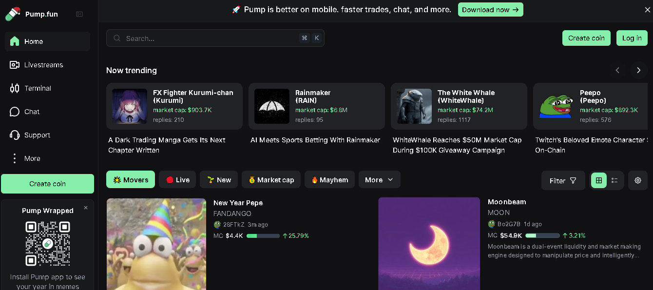 Pump fun is a Crypto creation and tracking platform that allows users to create and monitor cryptocurrency portfolios, track market trends, and receive real-time updates on their investments.
