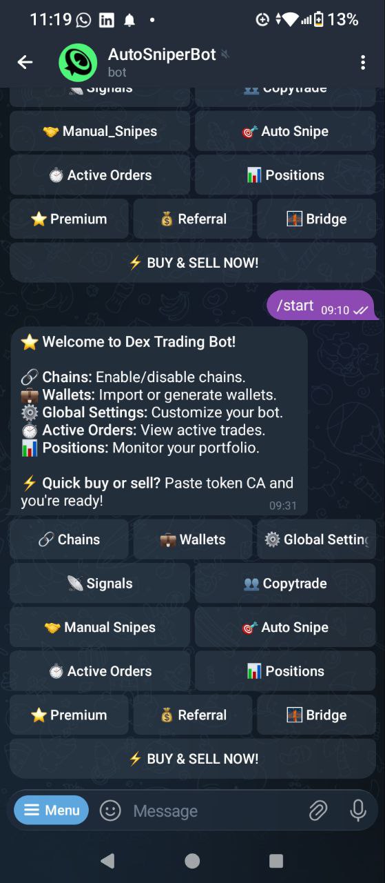 AutoSniper Bot is an automated trading bot designed for Telegram that utilizes advanced algorithms to execute trades on behalf of users. The bot monitors market trends, analyzes data, and makes informed trading decisions to maximize profits while minimizing risks.